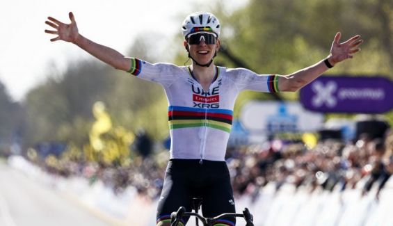 Tadej Pogacar (UAE Emirates - XRG) bate todos os recordes no ciclismo mundial. Depois de demonstrar a sua perseverança e adaptabilidade a qualquer terreno com a sua monumental vitória na Milão-San Remo, voltou a subir ao topo do pódio com outra prestação que ficará gravada nos anais mais gloriosos da modalidade. O ciclista esloveno travou um duelo de titãs com Mathieu van der Poel (Alpecin - Premier Tech), que resistiu a todos os ataques do campeão do mundo até à subida final do Oude Kwaremont, a 18 km da meta, onde finalmente escapou e rumou a mais uma vitória na sua carreira. Remco Evenepoel (Red Bull - Bora), na sua estreia na clássica belga, garantiu um lugar no pódio, terminando com um magnífico e merecido terceiro lugar.