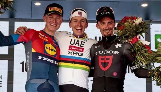 Após Pogacar cortar a meta em primeiro lugar, o dinamarquês Albert Philipsen (Lidl-Trek), de apenas 19 anos, conseguiu sprintar e ser segundo classificado, com Julian Alaphilippe (Tudor) a fechar o pódio no terceiro posto. Paul Lapeira e Sergio Higuita completaram o top 5.