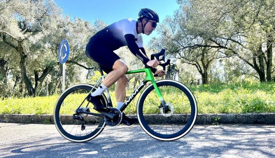 O desenvolvimento deste novo quadro em carbono de alto módulo serviu, sobretudo, para dar à equipa uma bicicleta superleve, capaz de ombrear com as melhores. Já tivemos a oportunidade de testar praticamente todas as bicicletas de topo e dizemos sem qualquer hesitação que esta Adrenaline SL está ao mesmo nível. Tal como acontece atualmente nas grandes marcas, a MMR adotou uma geometria que não é demasiado competitiva nem excessivamente relaxada. Porquê? Porque as provas atuais são sempre "com a faca na garganta", isto é, o ritmo é sempre muito alto, portanto é preciso uma bicicleta que permita manter um andamento alto, mas sem massacrar demasiado as costas, e que, ao mesmo tempo, não seja excessivamente permissiva, o que poderia comprometer a aerodinânica e a performance geral. Este compromisso está muito bem concebido nesta bicicleta e quando ultrapassamos a barreira das 3h a pedalar não sentimos o desgaste tradicional das bicicletas racing.