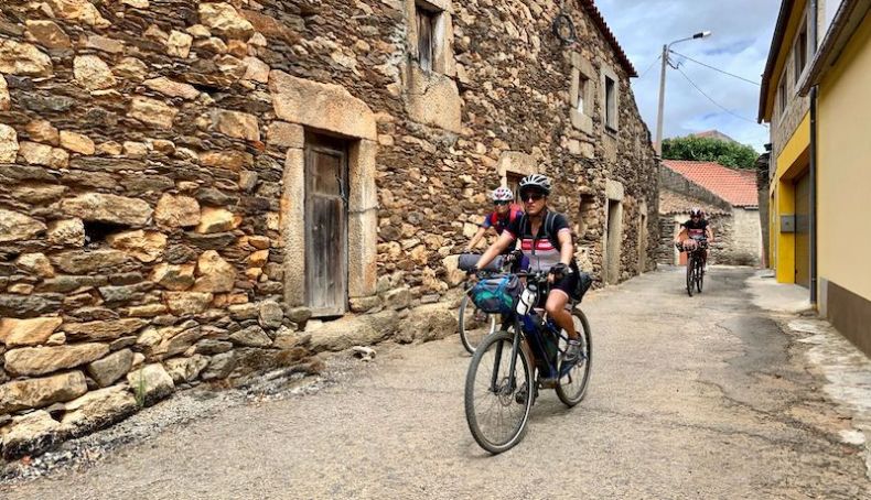 Começámos a pedalar por estradas secundárias, descendo até ao encontro do Rio Douro, e acompanhámos o seu leito por uns momentos, com Espanha à vista na outra margem. Avizinhava-se a dureza da etapa, com trilhos difíceis e muita subida. Assim se faz em Trás os Montes!