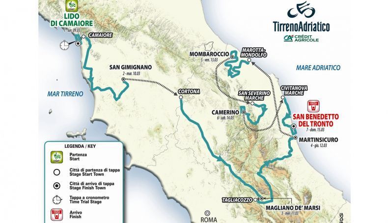 O Parlamentino do Palazzo Li Madou, em Ancona, foi o palco da apresentação oficial da 61.ª edição da Tirreno-Adriático, que se disputará de 9 a 15 de Março, com um contrarrelógio individual e seis etapas em linha.