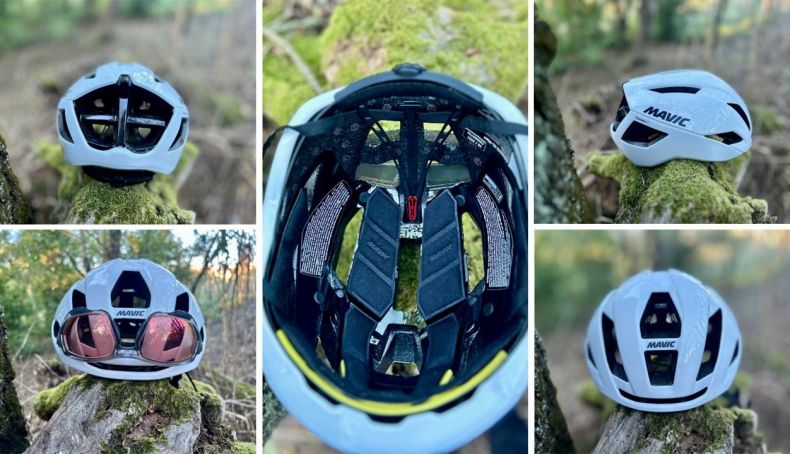 Pesando apenas 271g no tamanho M, o Comete SL Mips é um dos capacetes mais ventilados da Mavic. Tem 16 aberturas, com a parte dianteira a destacar-se pelas grelhas de diferentes dimensões.