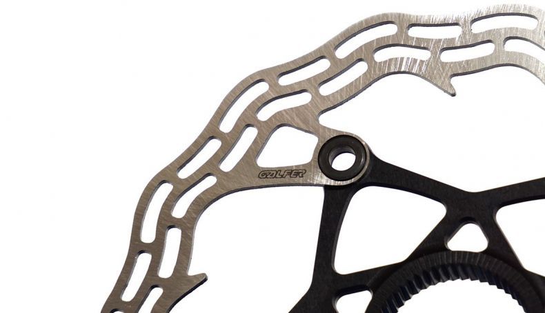 Se compararmos com a versão de BTT, mantêm os dentes de tubarão na parte interna, embora possuam menos unidades - de 18, 16 ou 12 passam para somente 5 -, portanto são mais discretos. Também herdam o design Wave na zona de travagem. ou seja, a forma ondulada que distingue os Galfer da concorrência. A aranha é fabricada em alumínio 7075-T5 CNC e anodizado em preto, enquanto a zona de travagem é em aço inoxidável endurecico. A união entre estas duas zonas é feita através de 5 rebites ocos de aço inoxidável de 8 mm. Tem 1,8 mm de espessura e está disponível somente para fixação Center Lock em 160 e 140 mm de diâmetro.